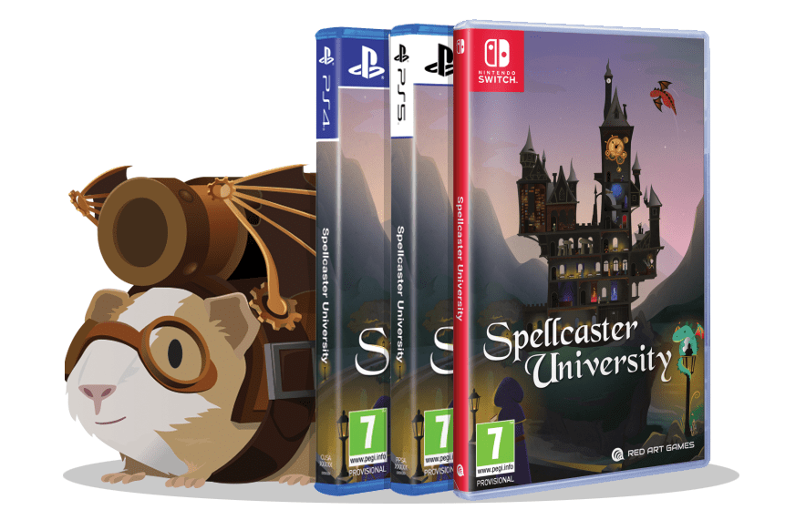 We are happy to announce that Spellcaster University has been released on PS4, PS5, and Switch thanks to the work of our partners Red Art! The guinea pigs are already ready to send the physical versions on their website: https://www.redartgames.com/games/601-spellcaster-university-nintendo-switch.html